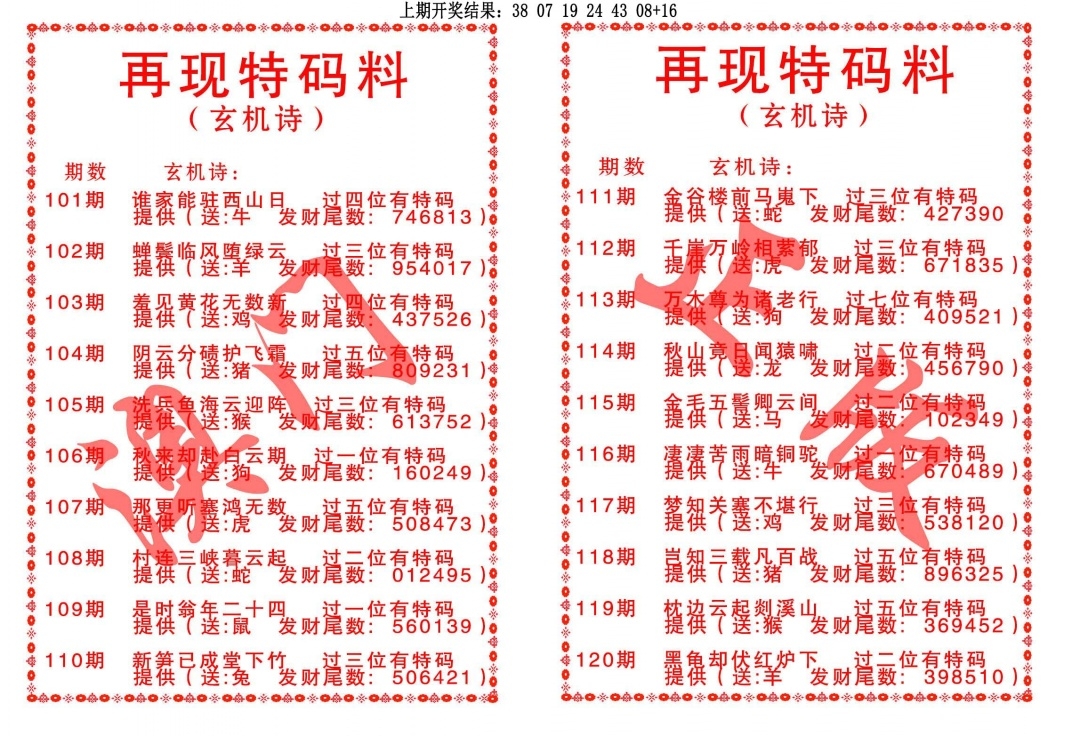 再现特码料