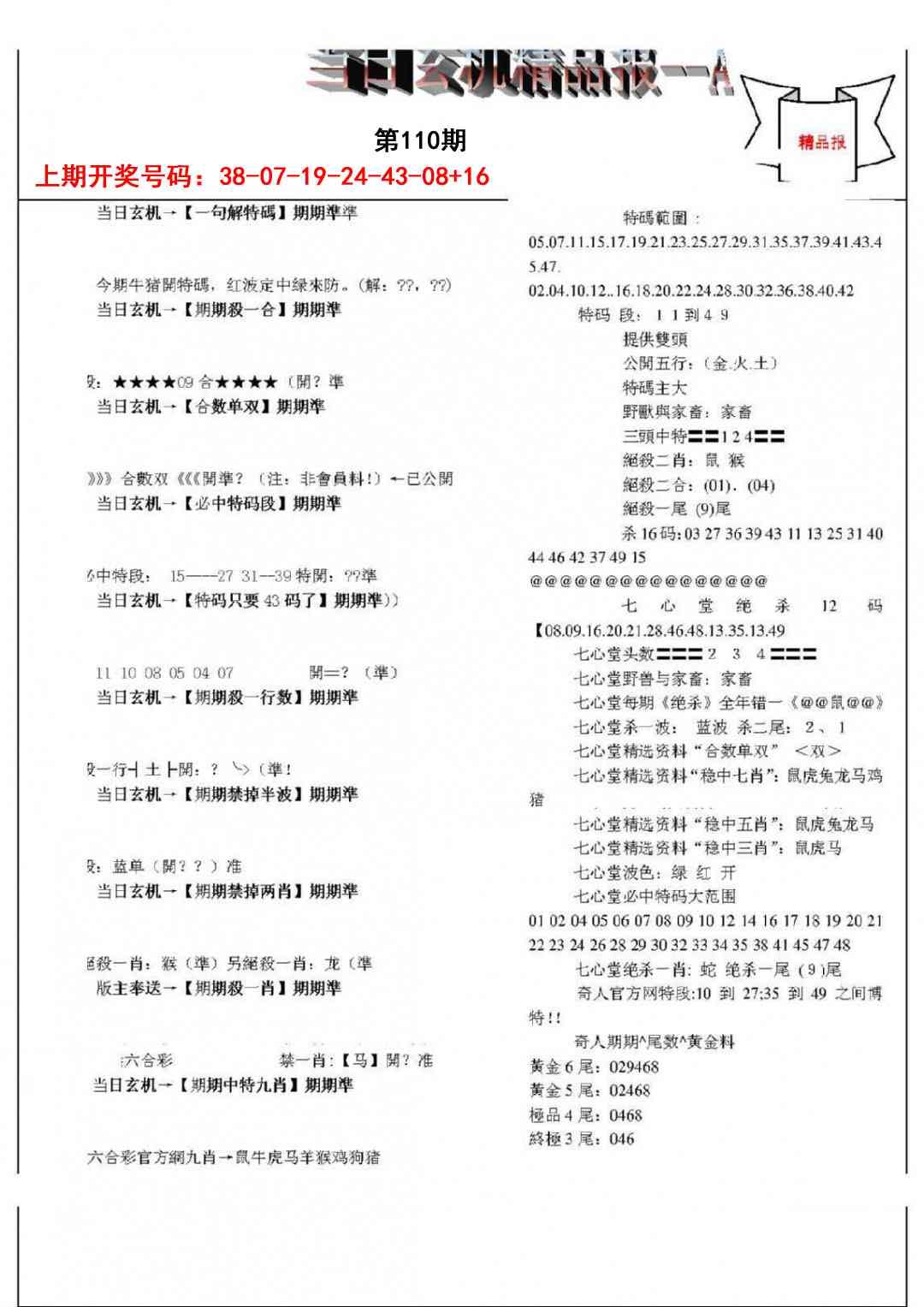 当日玄机精品报A